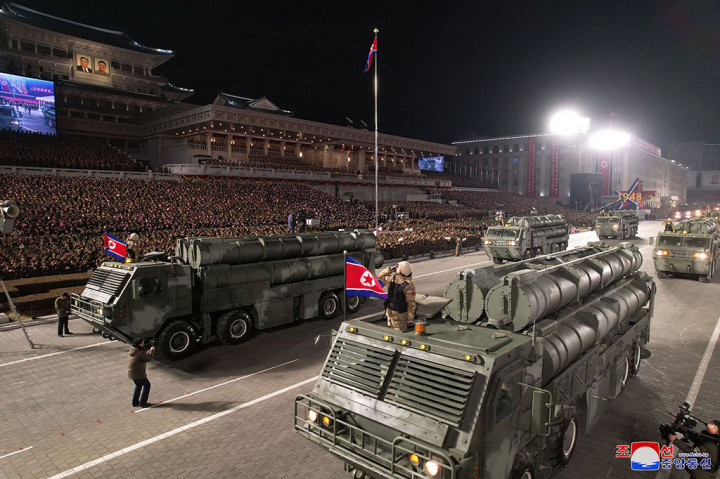 Jakarta: Pemimpin Korea Utara Kim Jong Un menyaksikan parade militer besar-besaran untuk memperingati 75 tahun berdirinya angkatan bersenjata, Rabu, 8 Februari 2023. Parade militer tersebut menampilkan persenjataan tercanggih milik Korut.