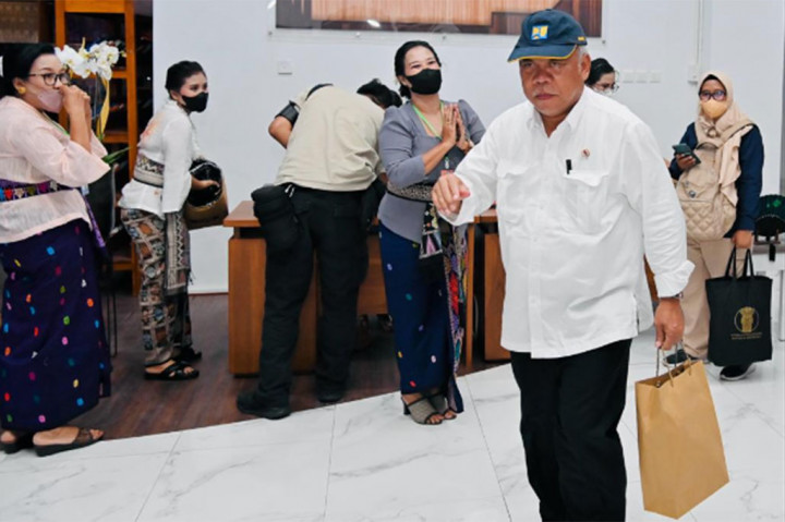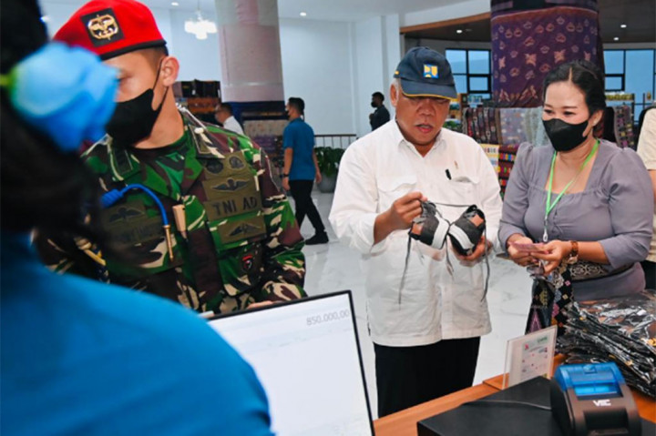 "Ini saya juga beli," ucap Basuki kepada Sekretaris Kabinet Pramono Anung yang tengah tersenyum melihat Menteri PUPR menjinjing sebuah kantong. Foto: BPMI Setpres Cek Berita dan Artikel yang lain di Google News