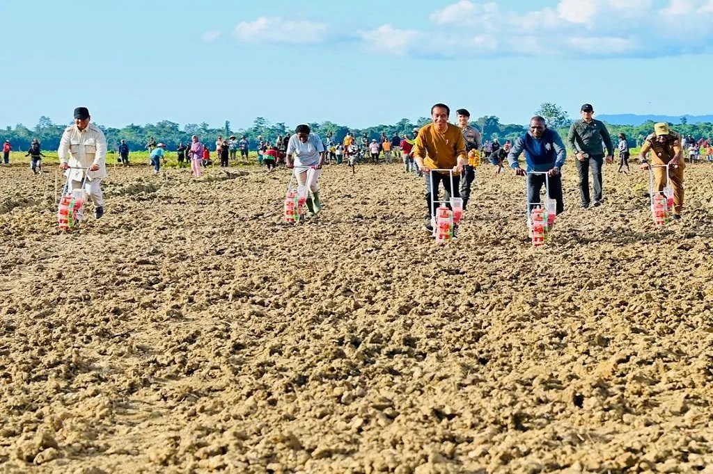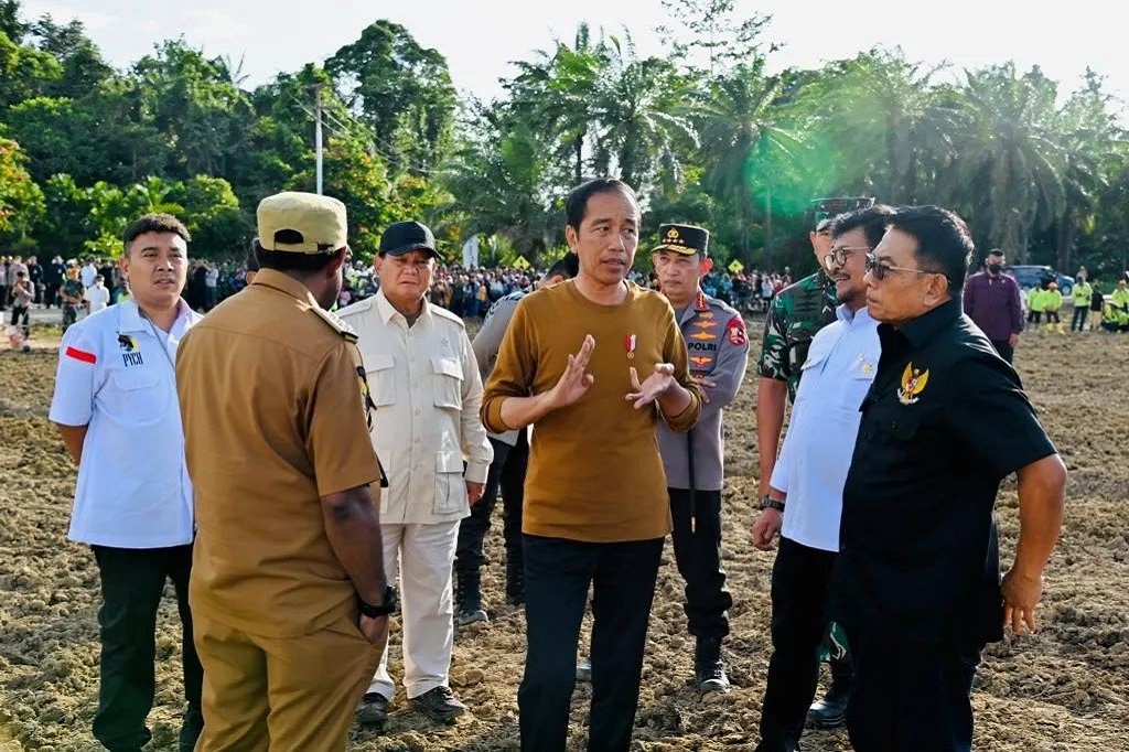 Jakarta: Presiden Joko Widodo meninjau lumbung pangan (food estate) di Kabupaten Keerom, Papua, Selasa, 21 Maret 2023.
