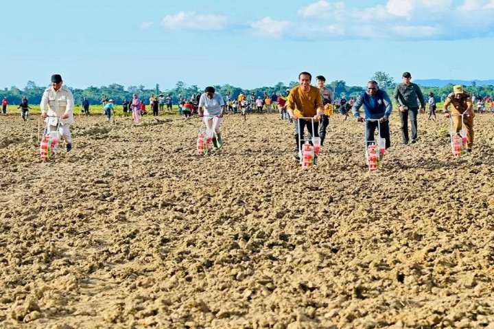 "Di sini akan disiapkan kurang lebih 10 ribu hektare untuk penanaman jagung. Tapi sekarang yang sudah disiapkan (and clearing), kemudian pengolahan tanah baru 500 hektare, tahun depan 2.500 hektare. Tetapi yang ditanam hari ini baru 100 hektare," ujarnya
