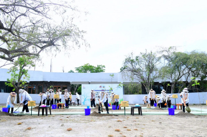 Selain meninjau habitat komodo, Ibu Iriana dan anggota Organisasi Aksi Solidaritas Era Kabinet Indonesia Maju (OASE KIM) menanam pohon kesambi di Pulau Rinca.