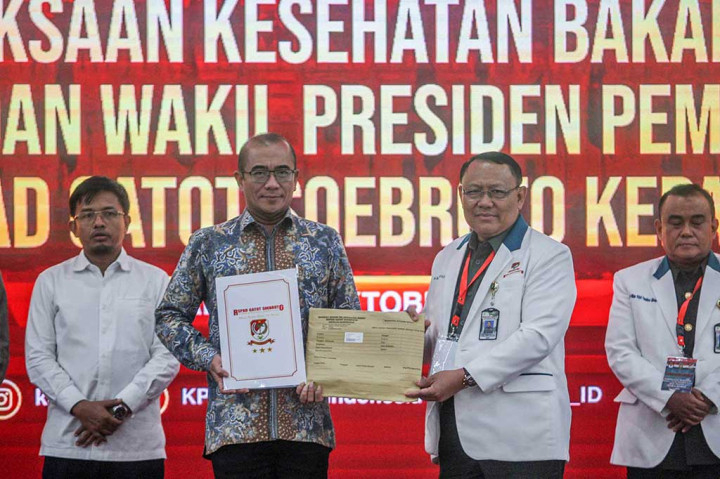 Jakarta: Ketua Komisi Pemilihan Umum (KPU) Hasyim Asy'ari menyebut hasil tes kesehatan tiga bakal pasangan calon (paslon) presiden dan wakil presiden menunjukkan mereka semua mampu menjalani tugas sebagai presiden dan wakil presiden.