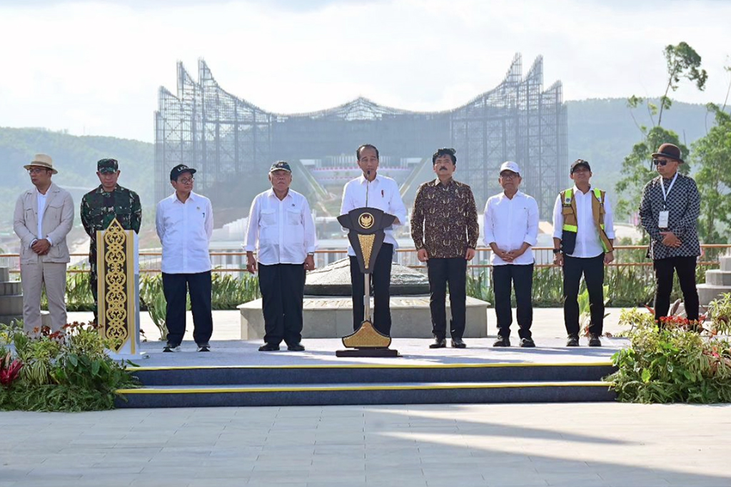 Jakarta: Presiden Joko Widodo meresmikan Taman Kusuma Bangsa, yang akan menjadi tempat renungan suci, di Ibu Kota Nusantara (IKN), Kalimantan Timur, Senin, 12 Agustus 2024 sore.