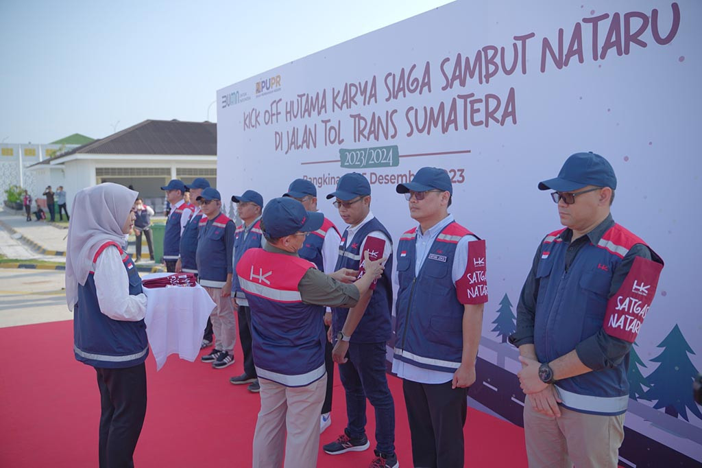 Riau: PT Hutama Karya (Persero) memulai rangkaian arus libur Natal dan Tahun Baru (Nataru) 2023/2024 dengan melakukan pengukuhan Tim Satuan Tugas (Satgas) Siaga Mudik Nataru 2023/2024 secara simbolis dalam Kick Of Apel Siaga di Rest Area KM 36 Jalur A Tol Pekanbaru-Bangkinang.