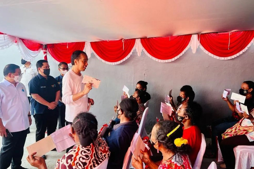 Jayapura: Presiden Joko Widodo resmi membagikan bantuan langsung tunai bahan bakar minyak (BLT BBM) kepada masyarakat Jayapura di Kantor Pos Cabang Sentani Kabupaten Jayapura.