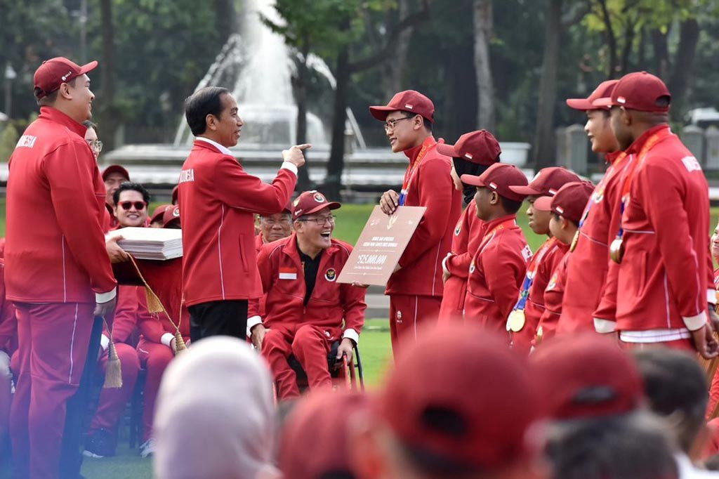 Presiden mengucapkan terima kasih kepada para atlet, pelatih dan asisten pelatih serta seluruh kontingen karena dengan kegigihan dan kerja kerasnya telah mengharumkan nama bangsa dan negara.