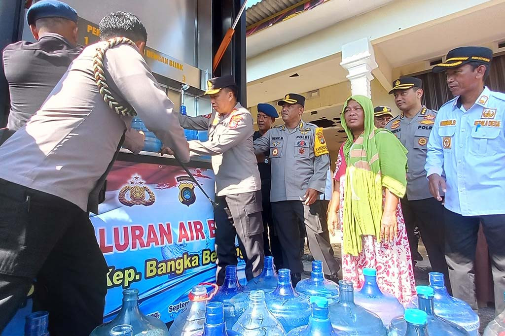 Lantaran hari itu, Kepolisian daerah (Polda) Babel mendistribusikan air bersih gratis kepada warga Desa Batu Belubang yang terdampak kekeringan.