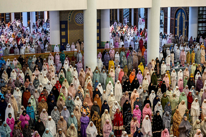 Sementara, usai tarawih sejumlah jemaah melanjutkan kegiatan tadarus atau baca dan simak Al Quran bersama. AFP PHOTO/Juni Kriswanto Cek Berita dan Artikel yang lain di Google News