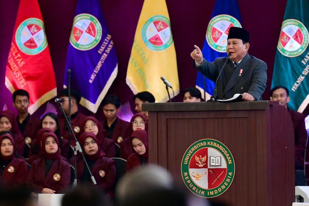 Adapun Presiden Prabowo Subianto menghadiri Sidang Senat Terbuka dalam rangka Pengukuhan Mahasiswa Baru Sarjana dan Magister Tahun Ajaran 2025/2026, serta Wisuda Sarjana sekaligus Dies Natalis Universitas Kebangsaan Republik Indonesia (UKRI) Tahun 2025.