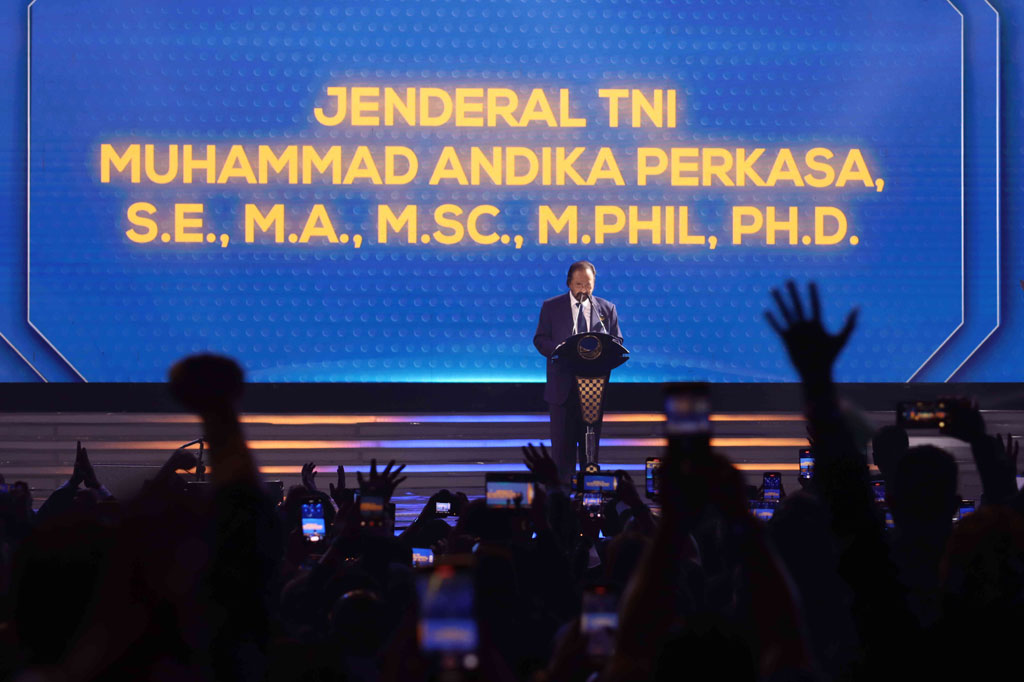 "Saya ingatkan, tidak ada yang kurang dari tiga nama ini nilainya sama, kualifikasinya sama. Hanya urutan saja yang berbeda, 1, 2, dan 3," kata Surya Paloh di hadapan belasan ribu kader NasDem.