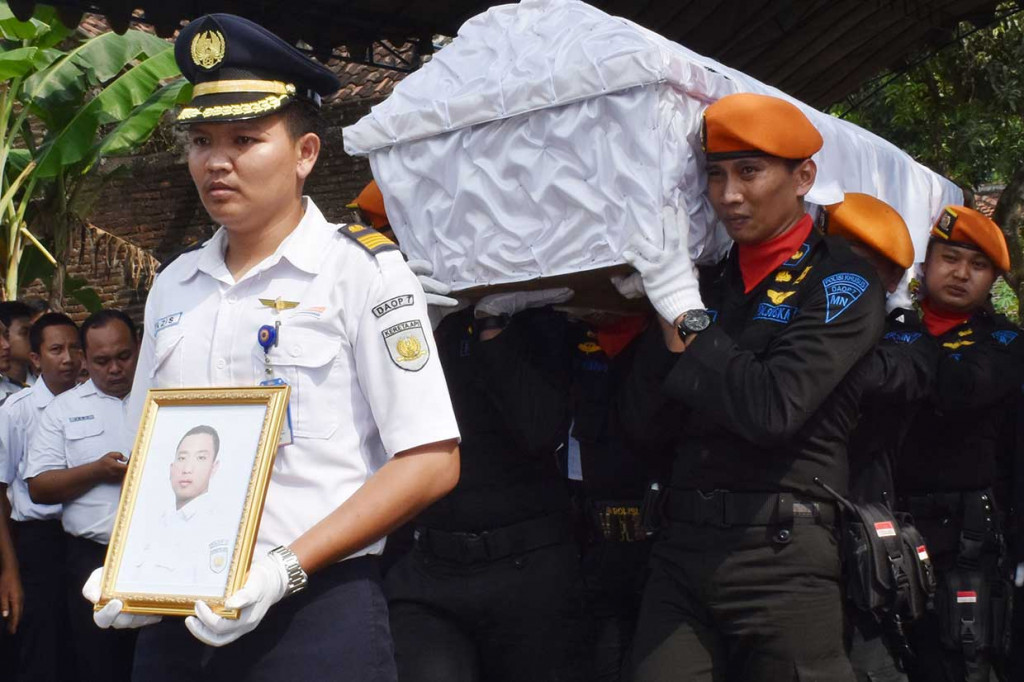 Madiun: Jenazah Mustofa, 30, masinis KA Sancaka yang mengalami kecelakaan dengan truk trailer di lintasan liar di Desa Sambirejo, Kabupaten Ngawi, Jawa Timur, dimakamkan oleh pihak keluarga, Sabtu, 8 April 2018. ANTARA/Siswowidodo/Zabur Karuru Cek Berita dan Artikel yang lain di Google News