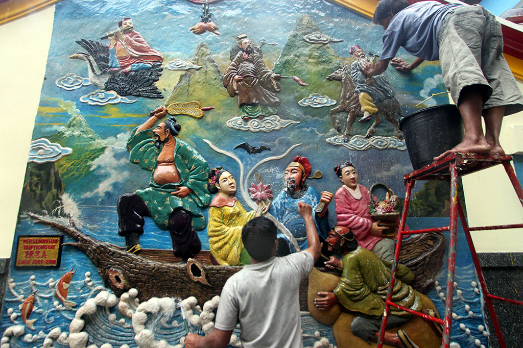 Bogor: Sejumlah vihara di Tanah Air mulai dibenahi guna menyambut Tahun Baru Imlek 2018. Tahun Baru Imlek 2569 jatuh pada 16 Februari 2018 mendatang. Tahun Baru Imlek 2569 ber-shio Anjing Tanah. ANTARA FOTO Cek Berita dan Artikel yang lain di Google News