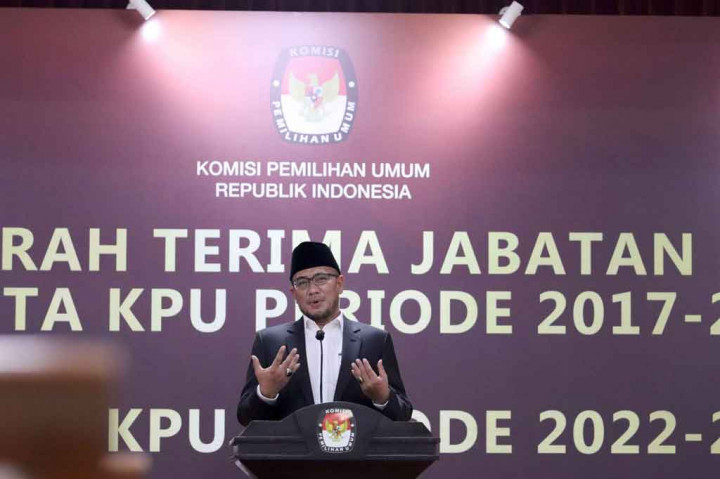 Jakarta: Komisioner Komisi Pemilihan Umum (KPU) Hasyim Asy'ari resmi menjadi Ketua KPU periode 2022-2027, yang diresmikan dalam acara Serah Terima Jabatan Anggota KPU Periode 2022-2027.