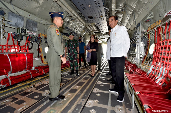 Presiden sempat meninjau kargo hingga kokpit pesawat yang baru tiba dari pabrikan Lockheed Martin di Marietta, Georgia, Amerika Serikat, di Tanah Air, pada Senin, 6 Maret kemarin lusa.