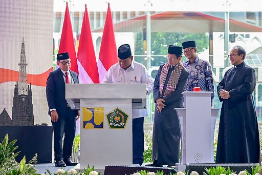 Jakarta: Presiden Prabowo Subianto meresmikan Terowongan Silaturahim yang menghubungkan Masjid Istiqlal dengan Gereja Katedral, di Jakarta, Kamis, 12 Desember 2024.