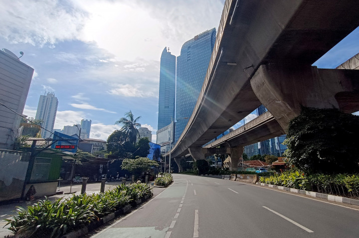 Jakarta: Suasana lalu lintas yang lengang di seputaran kawasan jalan protokol di Jakarta, Rabu, 1 Januari 2025. Memasuki hari pertama di Tahun Baru 2025 kondisi arus lalu lintas di Jakarta relatif lancar dibandingkan dengan hari-hari biasa di jam kantor yang biasanya dipadati kendaraan roda empat maupun roda dua.