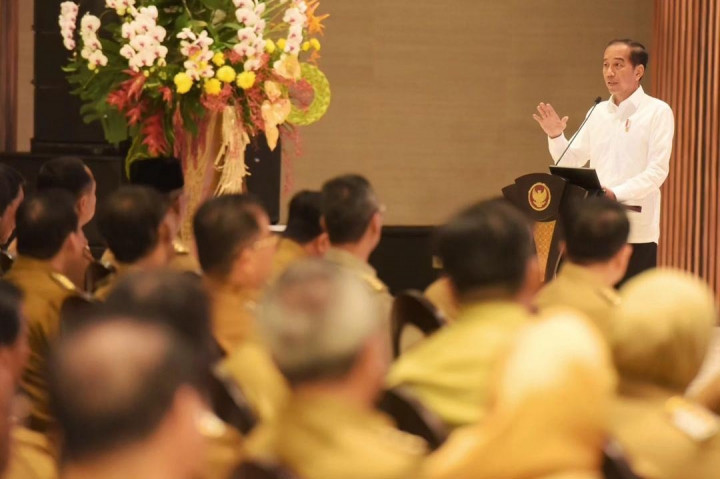 Jakarta: Presiden Joko Widodo memberikan arahan kepada ratusan kepala daerah dan menyambut dengan ucapan selamat datang di Ibu Kota Nusantara yang berada di Kabupaten Penajam Paser Utara, Kalimantan Timur.