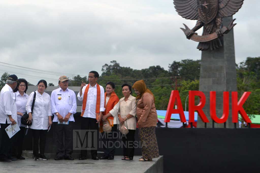 Metrotvnews.com, Sambas: Presiden Joko Widodo meresmikan Pos Lintas Batas Negara (PLBN) Terpadu Aruk di Kabupaten Sambas, Kalimantan Barat, Jumat (17/3/2017). MI/Aries Munandar