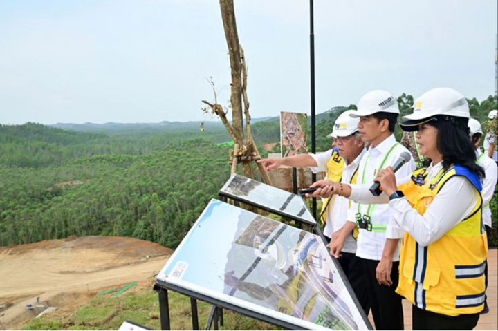 Jakarta: Presiden Joko Widodo meninjau perkembangan pembangunan dan memasang bilah pertama Garuda di Kantor Presiden, Ibu Kota Nusantara (IKN), Penajam Paser Utara, Kalimantan Timur, Jumat, 22 September 2023.