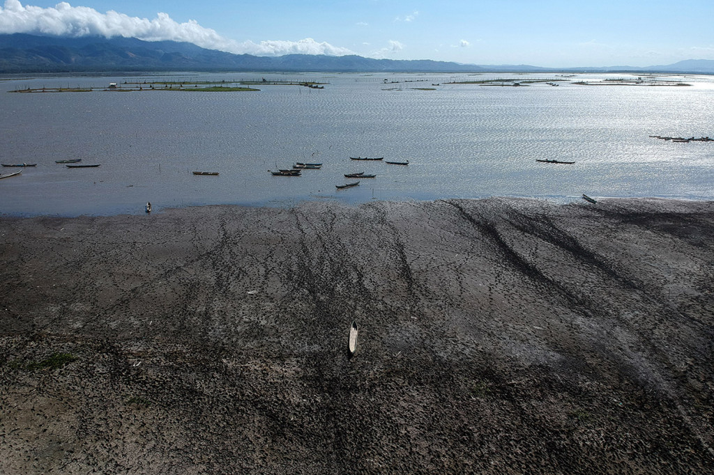 Keringnya danau juga memaksa nelayan memarkir perahunya.