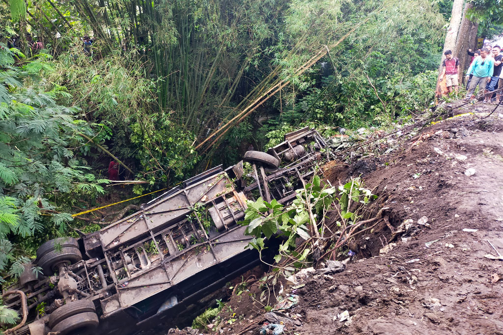 "Kecelakaan tunggal yang terjadi disebabkan karena pengemudi dalam kondisi ngantuk dan tidak bisa mengendalikan kendaraan hingga masuk jurang kurang lebih 10 meter sebelah kiri jalan. Dalam kecelakaan tersebut, tiga orang meninggal dunia dan beberapa penumpang lainnya mengalami luka berat dan ringan," paparnya.