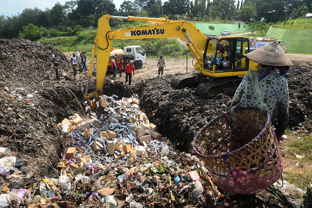Metrotvnews.com, Kudus: Sebanyak 23,5 ton batang rokok yang tidak dilengkapi pita cukai hasil penindakan bulan Mei 2016 hingga Februari 2017 dengan potensi kerugian negara mencapai Rp5,5 miliar dimusnahkan Bea dan Cukai Kudus. Pemusnahan dilakukan menggunakan alat berat untuk mengubur rokok ilegal di Tempat Pembuangan Akhir (TPA) Tanjungrejo, Kudus, Jawa Tengah, Rabu (26/4/2017). ANTARA/Yusuf Nugroho Cek Berita dan Artikel yang lain di Google News