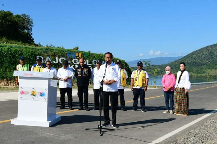 "Pagi hari ini kita melihat bahwa jalan dari Labuan Bajo ke Golo Mori telah selesai, ini akan memperbaiki konektivitas dalam rangka mengembangkan Labuan Bajo sebagai destinasi pariwisata super prioritas," kata Jokowi saat meresmikan Jalan Bajo-Golo Mori di KM 16, Labuan Bajo.