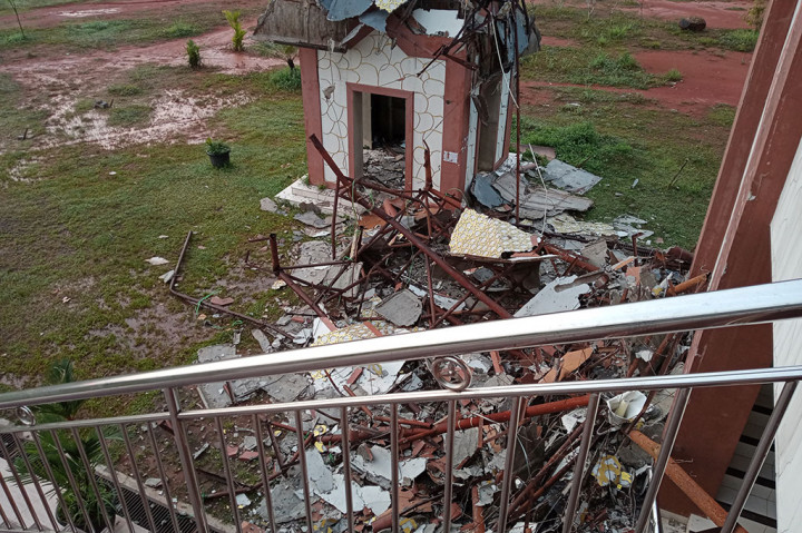 "Sore tadi memang cuacanya sedang hujan lebat, kemudian angin dan petirnya kencang juga saat kejadian. Menara yang ambruk tingginya sekitar 20 meter," ujar Baharman.