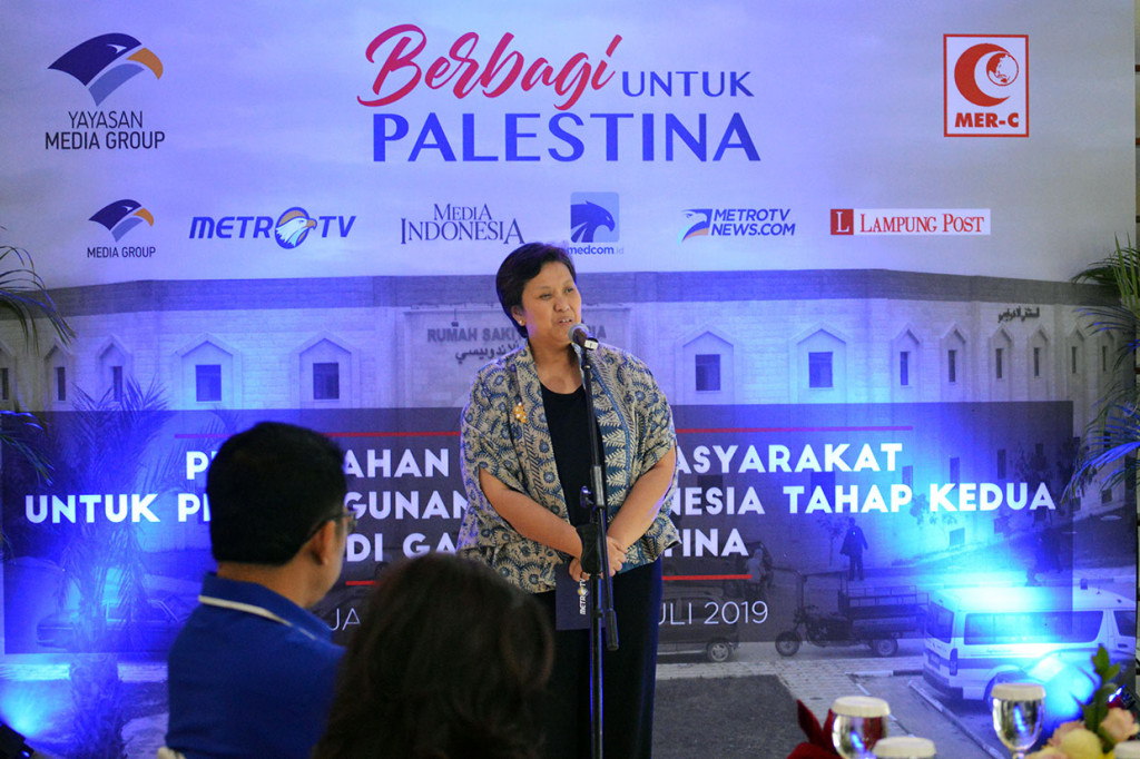 Jakarta: Media Group menyerahkan donasi untuk pembangunan Rumah Sakit (RS) Indonesia tahap dua di Gaza, Palestina, Rabu, 10 Juli 2019. Donasi yang diserahkan kepada Lembaga Medis dan Kemanusiaan Medical Emergency Rescue Committee (MER-C) sebesar Rp6.507.911.514. Medcom.id/Wijokongko Cek Berita dan Artikel yang lain di Google News