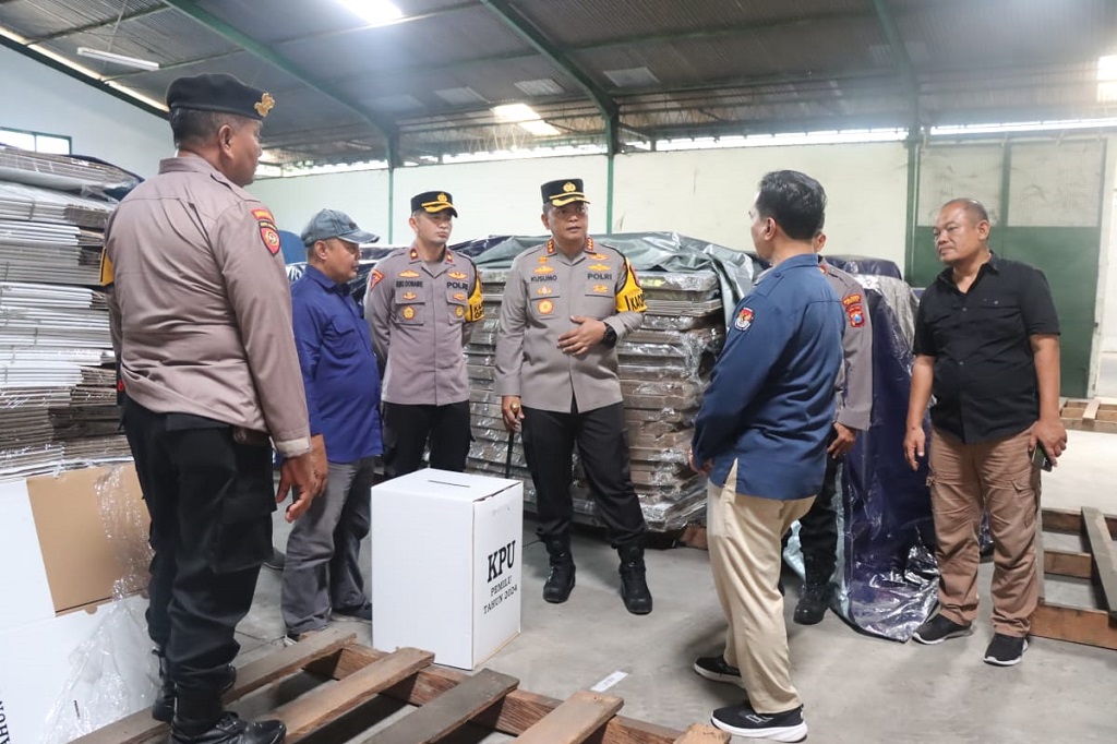 Kusumo datang memeriksa segala persiapan dan keamanan gudang logistik Pemilu 2024. Pengecekan mulai dari faktor keamanan, bebas banjir, kondisi ruang penyimpanan, bilik suara, segel kabel ties, tanda pengenal petugas, CCTV dan peralatan lainnya yang akan digunakan dalam Pemilu 2024 nanti.