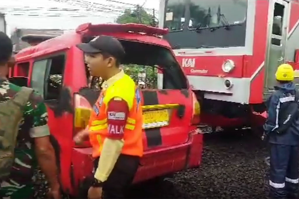 Setelah itu KRL menghantam sisi kanan mobil angkot hingga ringsek dan terseret sejauh 50 meter dari pintu kereta.