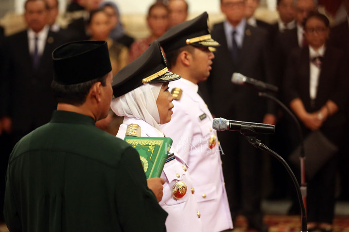 Jakarta: Presiden Joko Widodo melantik Gubernur dan Wakil Gubernur Jawa Timur periode 2019-2024 Khofifah Indar Parawansa-Emil Dardak di Istana Negara Jakarta, Rabu, 13 Februari 2019 sore. Jokowi juga melantik Wagub Jambi Fachrori Umar menjadi Gubernur menggantikan Zumi Zola yang terjerat kasus korupsi. MI/Ramdani Cek Berita dan Artikel yang lain di Google News