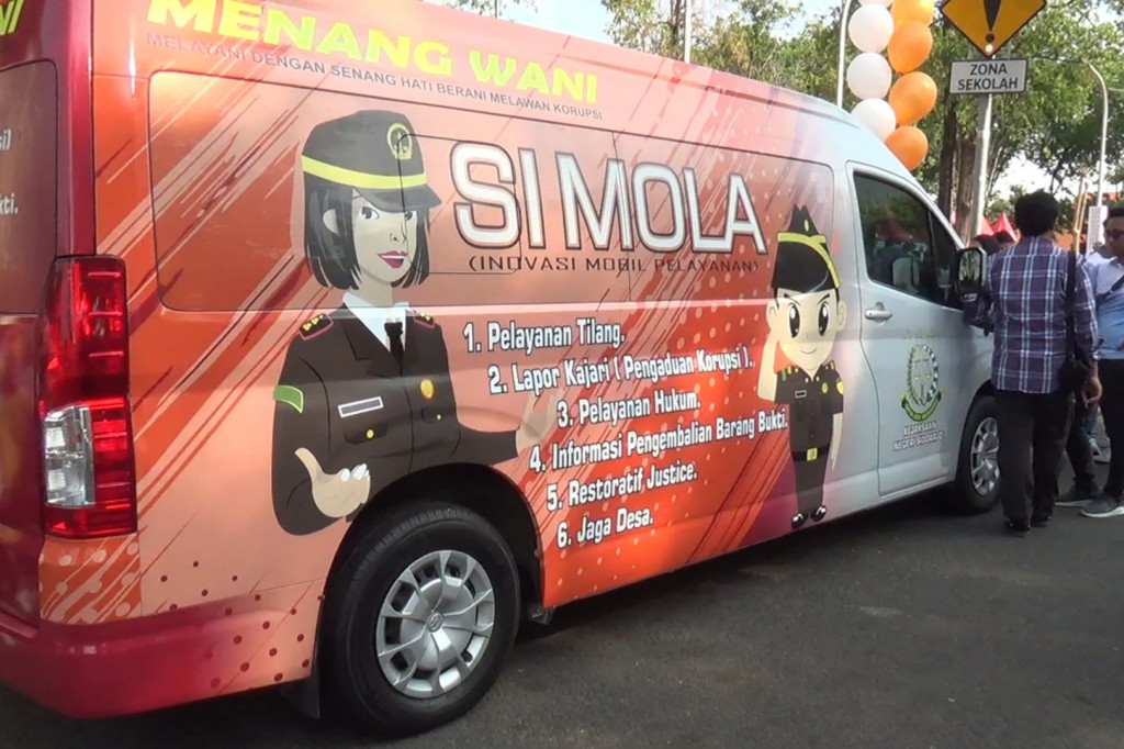 Sidoarjo: Kejari Sidoarjo meluncurkan program Inovasi Mobil Pelayanan atau Si Mola, untuk memberikan pelayanan pada masyarakat saat hari libur. Program Si Mola menggunakan kendaraan mobil ini dilakukan di tempat ramai seperti di alun-alun saat car free day.