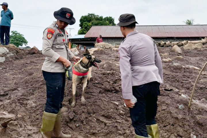 Jakarta: Sebanyak 102 personel dari Direktorat Samapta Polda Maluku Utara (Malut) dikerahkan ke lokasi banjir bandang dan tanah longsor di Kelurahan Rua, Kota Ternate. Personel dan anjing pelacak itu dikerahkan untuk mencari korban yang masih hilang.