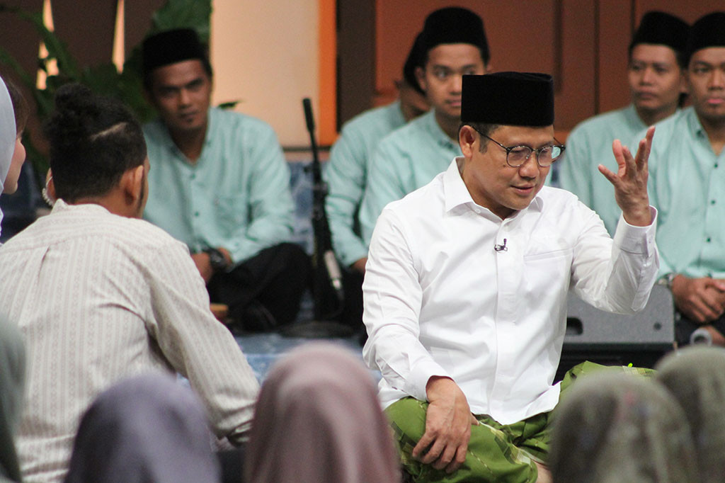 Muhaimin hadir dengan mengenakan setelan pakaian baju koko dan sarung. Acara tersebut juga dihadiri para santri dari Pondok Pesantren Madrosatul Qur'an Al Iskandariyah dan Pondok Pesantren Yatim Ziadatul Mubtadi'ien.