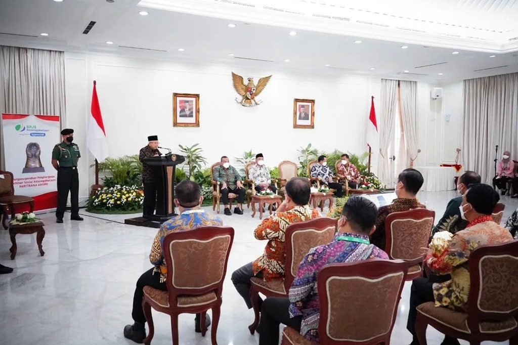 "Tentunya pelaksanaan perlindungan pekerja rentan di setiap daerah tidak bisa dilakukan sendiri oleh BPJS Ketenagakerjaan. Kerja sama para pemangku kepentingan sangat dibutuhkan," kata Wapres. Foto: BPMI Setwapres Cek Berita dan Artikel yang lain di Google News
