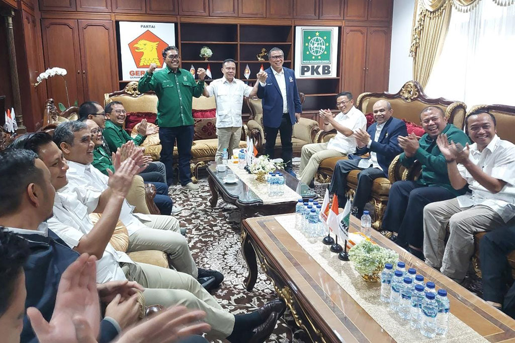 Anggota DPP Partai NasDem yang dipimpin Wakil Ketua Umum (Waketum) Partai NasDem Ahmad Ali disambut sejumlah petinggi Partai Gerindra dan PKB, di antaranya Ketua Harian DPP Partai Gerindra Sufmi Dasco Ahmad dan Wakil Sekretaris Jenderal DPP PKB Syaiful Huda.