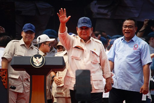 Pidato Presiden Prabowo ini disambut antusias oleh para pimpinan serikat buruh, termasuk Said Iqbal dan Jumhur Hidayat, yang turut hadir dalam peringatan May Day tersebut. AFP PHOTO/Azwar Ipang Cek Berita dan Artikel yang lain di Google News