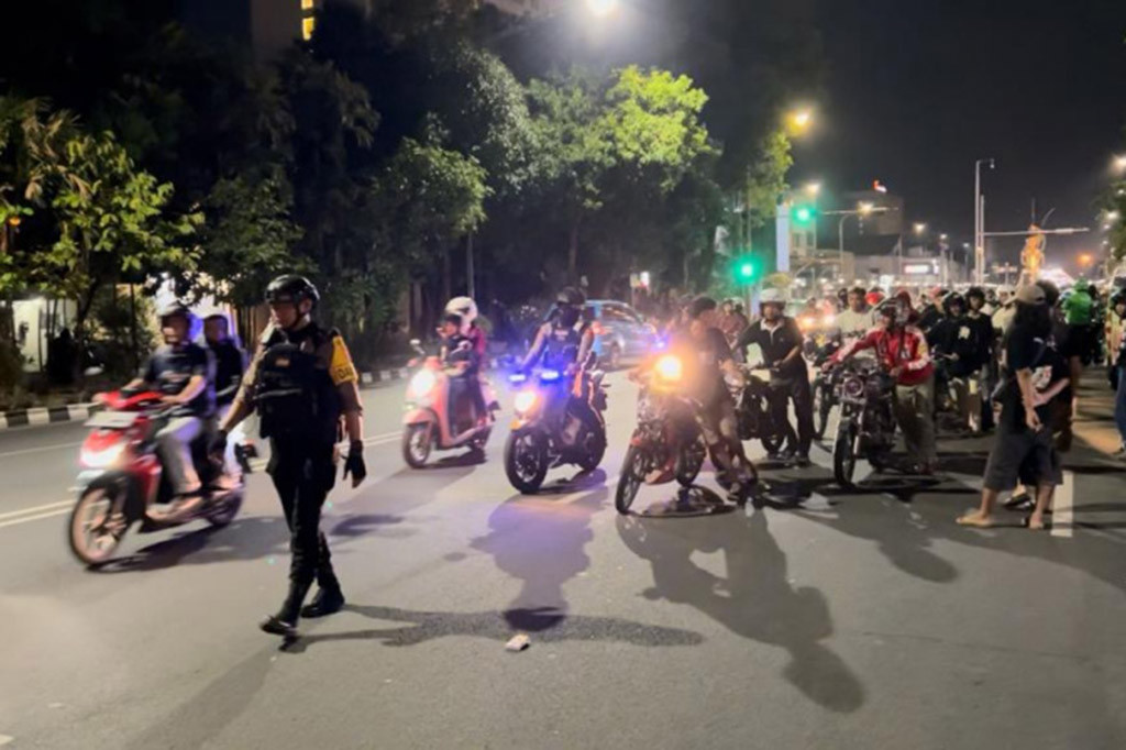 Solo: Polresta Surakarta amankan ratusan sepeda motor dengan menggunakan knalpot bising atau brong yang konvoi liar perayaan 1 Abad Persis Solo, di Jalan Slamet Riyadi, Surakarta, Jawa Tengah, Rabu, 8 November 2023 dini hari.