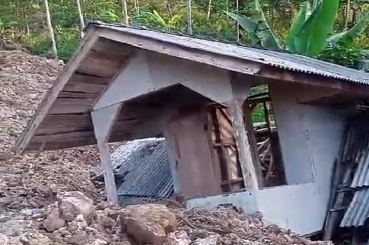 "Hujan deras yang terjadi sejak beberapa hari membawa material longsor dari sebuah tebing setinggi 70 meter menimbun dua rumah, tiga rumah lainnya rusak sedang termasuk satu masjid. Akan tetapi, longsor yang terjadi telah menutup badan jalan antar desa hingga menyebabkan 15 rumah dalam kondisi terancam dan 93 jiwa mengungsi ke rumah saudaranya untuk mengindari tanah longsor," katanya, Minggu, 19 November 2023.