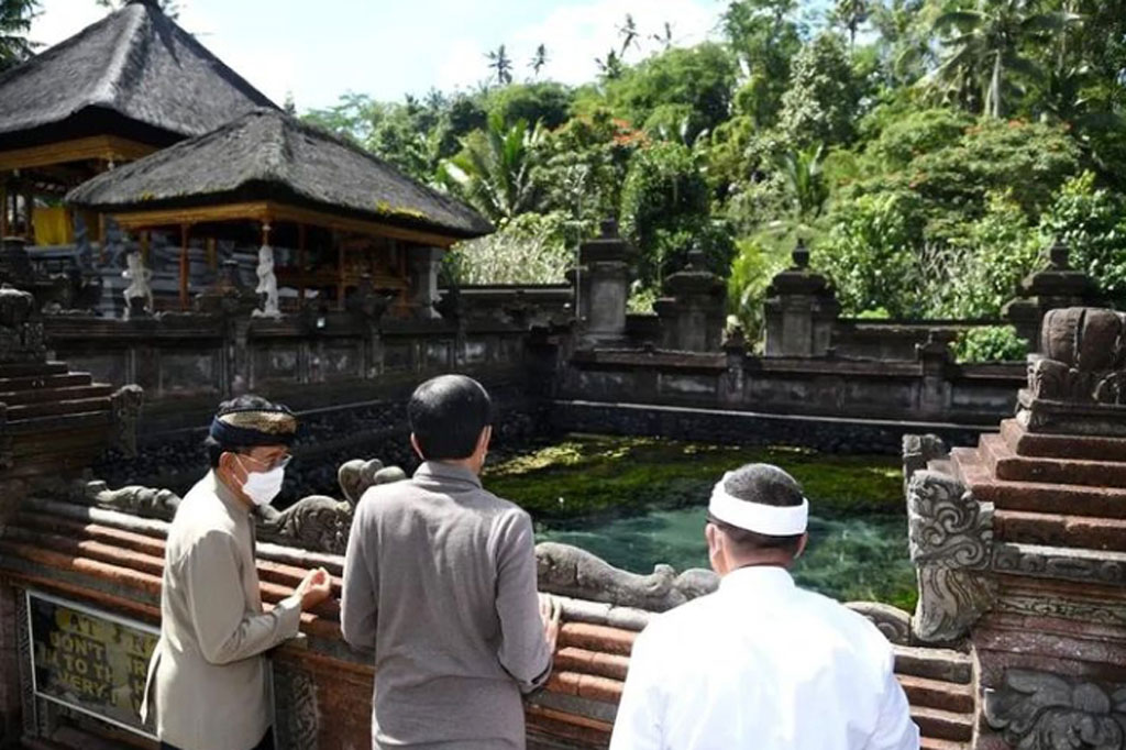 Jakarta: Presiden Joko Widodo (Jokowi) mengunjungi Pura Tirta Empul, Kabupaten Gianyar, Bali, Jumat, 6 Mei 2022. Jokowi meminta seluruh pihak untuk memelihara cagar budaya tersebut.