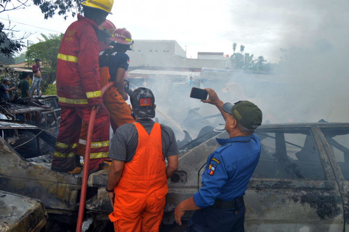 Kebakaran menghanguskan belasan mobil bekas yang terparkir di bengkel tersebut. Sementara kemacetan tak terelakkan di kedua arah, karena banyak pengendara memperlambat laju kendaraan mereka untuk melihat kebakaran tersebut.