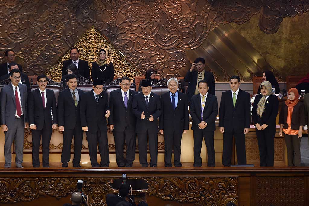 Komisioner KPI terpilih menghadiri Rapat Paripurna ke-33 Masa Persidangan V tahun 2015-2016 di Komplek Parlemen, Senayan, Jakarta, Rabu (20/7/2016).