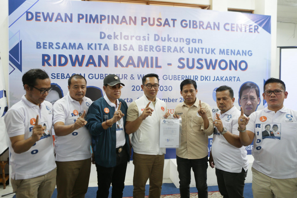 “Mudah-mudahan dengan jaringan Gibran Center yang sangat luas, bisa membantu memperkuat kemenangan bagi pasangan RIDO,” ujar RK.