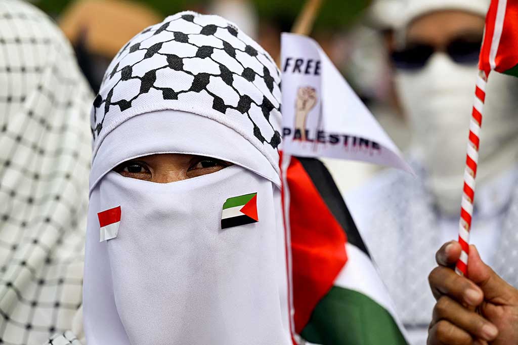 Denpasar: Ribuan Umat Muslim bersama elemen masyarakat lintas agama dan golongan di Bali, menggelar aksi damai mendukung perdamaian Palestina, di Lapangan Puputan Niti Mandala Renon, Denpasar, Sabtu 25 November 2023.