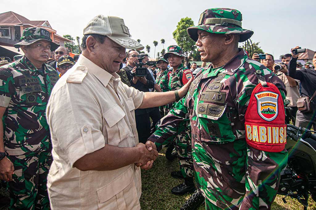 Prabowo juga menyalurkan bantuan kepada warga yang terdampak erupsi Gunung Marapi serta menyerahkan bantuan kendaraan operasional untuk Polri dan TNI. AFP PHOTO/Noli Kampai Cek Berita dan Artikel yang lain di Google News