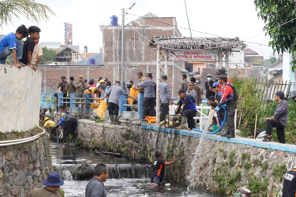 Garut: Penjabat (Pj) Bupati Garut, Barnas Adjidin, terjun langsung bersama masyarakat dalam membersihkan aliran Sungai Cikendi berada di Kelurahan Sukamenteri, Kecamatan Garut Kota, Kabupaten Garut. Kegiatan tersebut, merupakan bagian dari peringatan hari lingkungan Hidup Sedunia termasuk mengantisipasi banjir di musim penghujan.