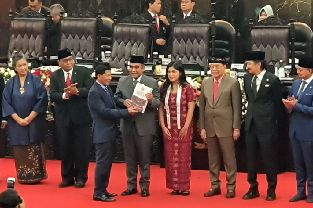 Selanjutnya, para pimpinan bersumpah menjalankan kewajiban dengan mengutamakan kepentingan bangsa. Aspirasi rakyat akan diperjuangkan.