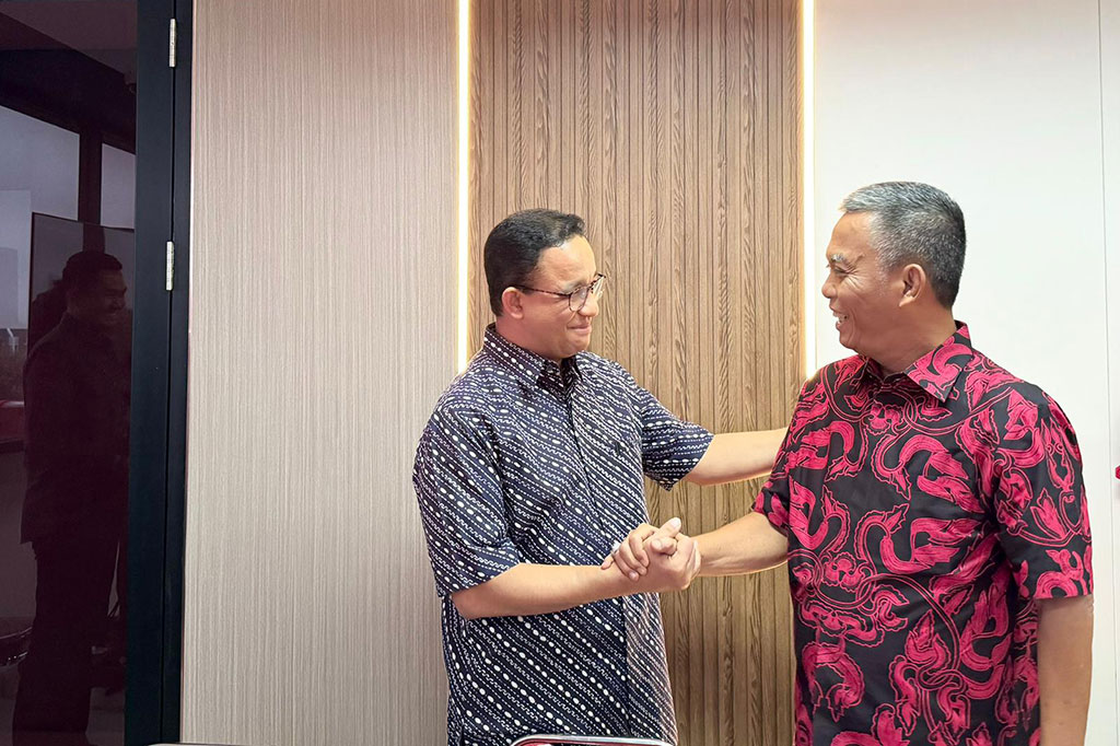 Jakarta: Mantan Gubernur DKI Jakarta Anies Baswedan menyambangi Kantor DPD Partai Demokrasi Indonesia Perjuangan (PDIP) Jakarta di Cakung, Jakarta Timur, Sabtu, 24 Agustus 2024.