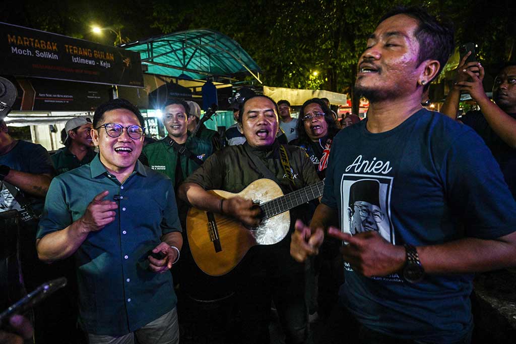 Sementara itu, kedatangan Cak Imin ke Taman Bungkul merupakan rangkaian aktivitas kampanye yang mulai digelar padal 28 November 2023 hingga 10 Februari 2024. AFP PHOTO/Juni Kriswanto Cek Berita dan Artikel yang lain di Google News